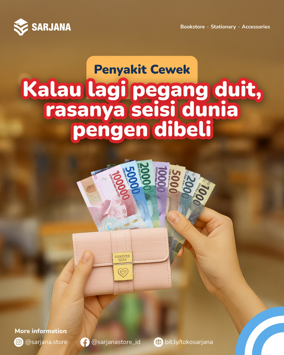 Di bawah adalah beberapa postingan carousel yang kami buat. Topik yang dibahas adalah seputar softselling dari produk yang dijual di Toko Buku Sarjana seperti buku, alat tulis, aksesoris wanita, dan ATK